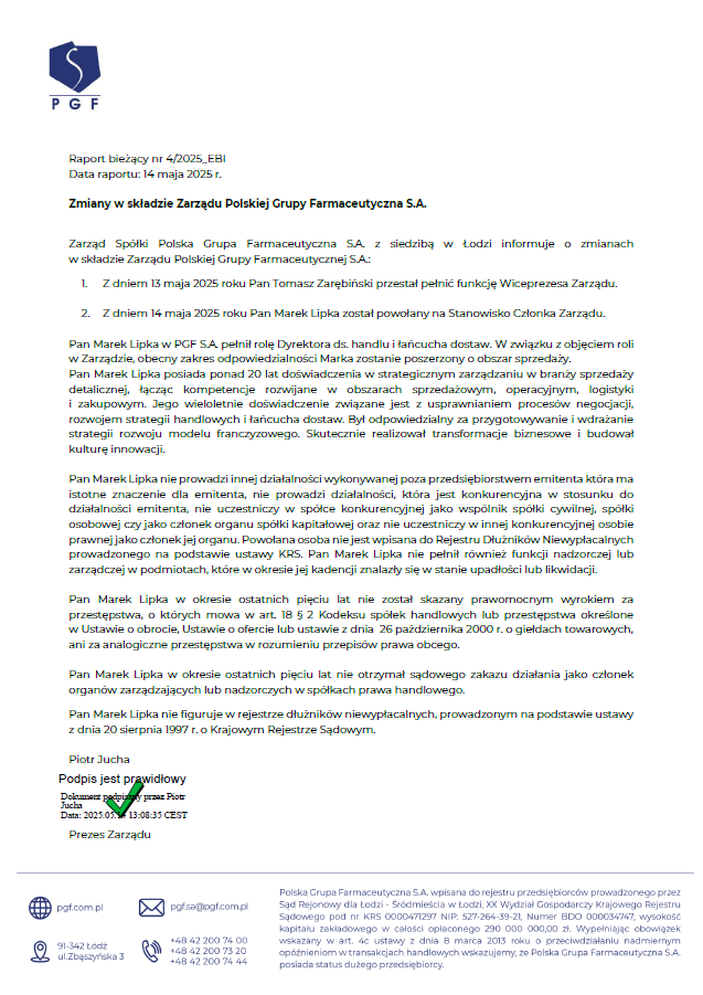 Ponieważ decyzja nie jest prawomocna w odwołaniu odnieśliśmy się szczegółowo do przekazanych Urzędowi danych księgowo -finansowych. Po wnikliwej ich analizie jesteśmy pewni, że przedstawione wnioski obiektywnie wskazują na brak uzasadnienia dla nałożenia kary na Polską Grupę Farmaceutyczną w postępowaniu omawianym przez Prezesa UOKiK.